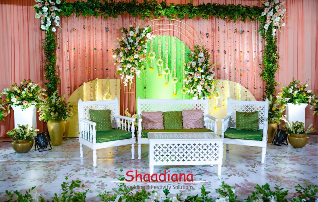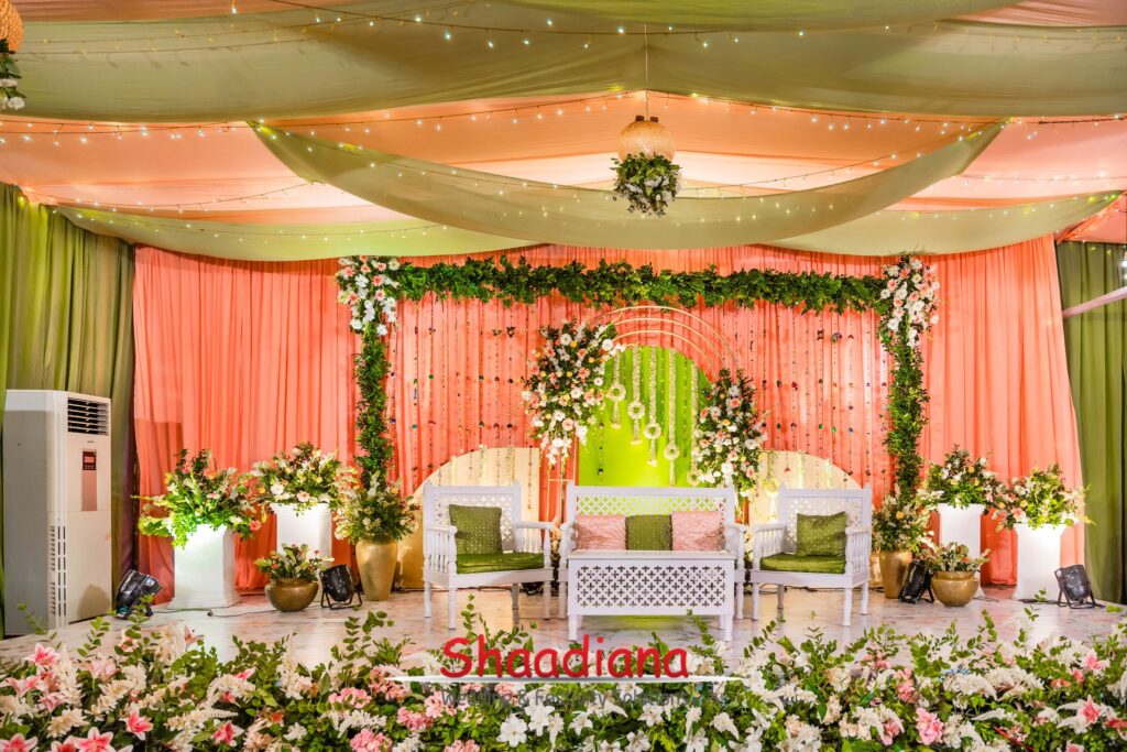 A cosy holud Ceremony turned into a vibrant, yet invigorating one, with the hue of peach and green.