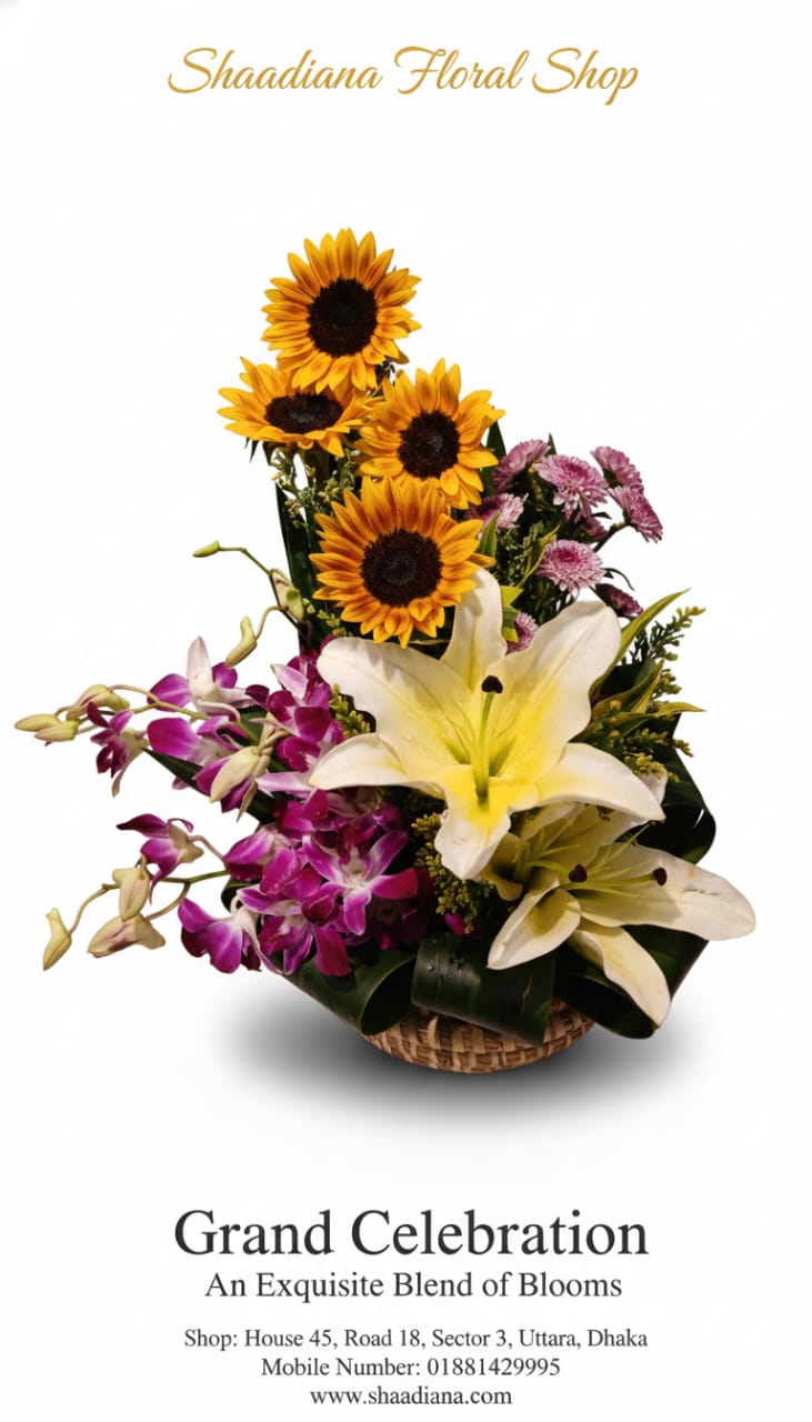 Designing Sunflower Basket . To order inbox us on WhatsApp Shaadiana Floral Shop & Event Management * Dhaka home delivery. * Surprise delivery at 11:59pm. * Premium quality maintained, made…