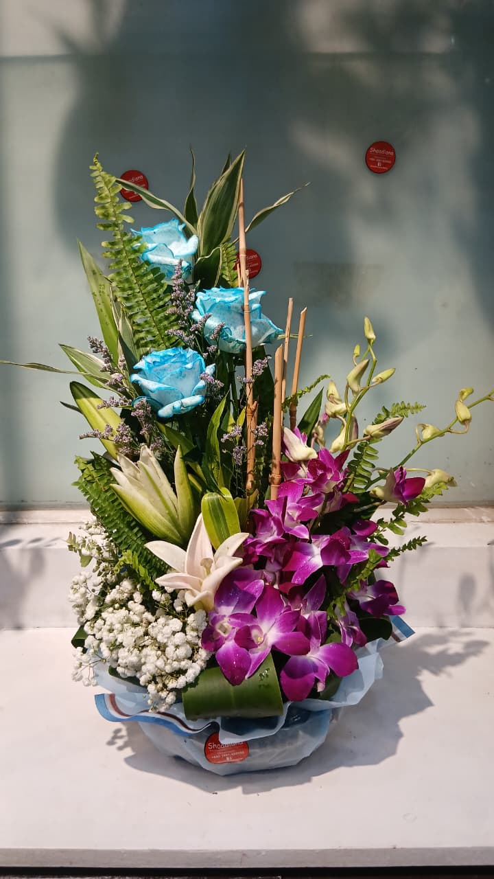 Blue Rose With Lily Flower Basket