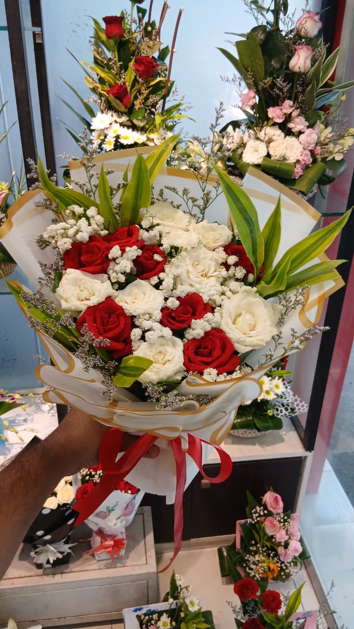 White and Red Rose Bouquet